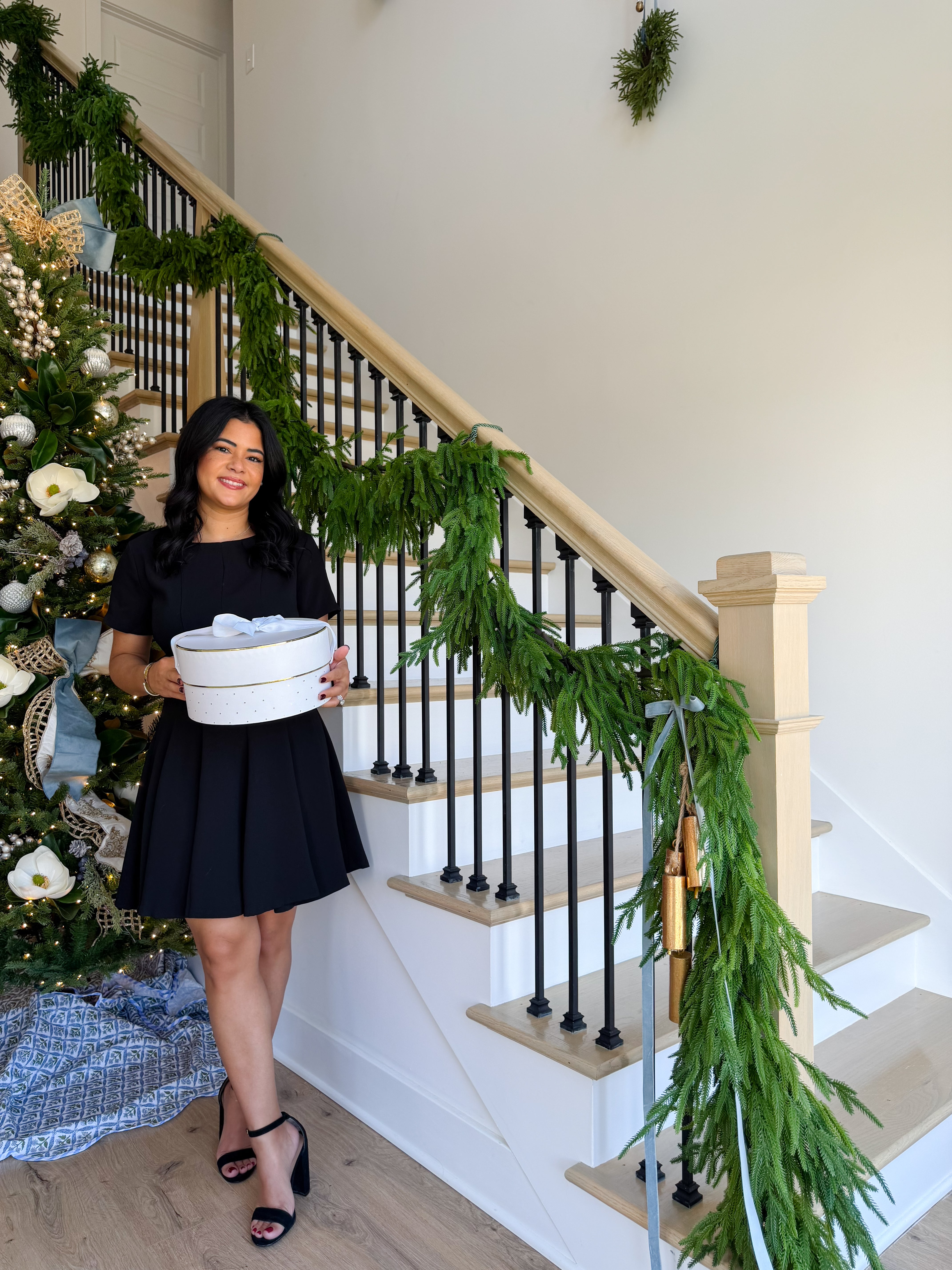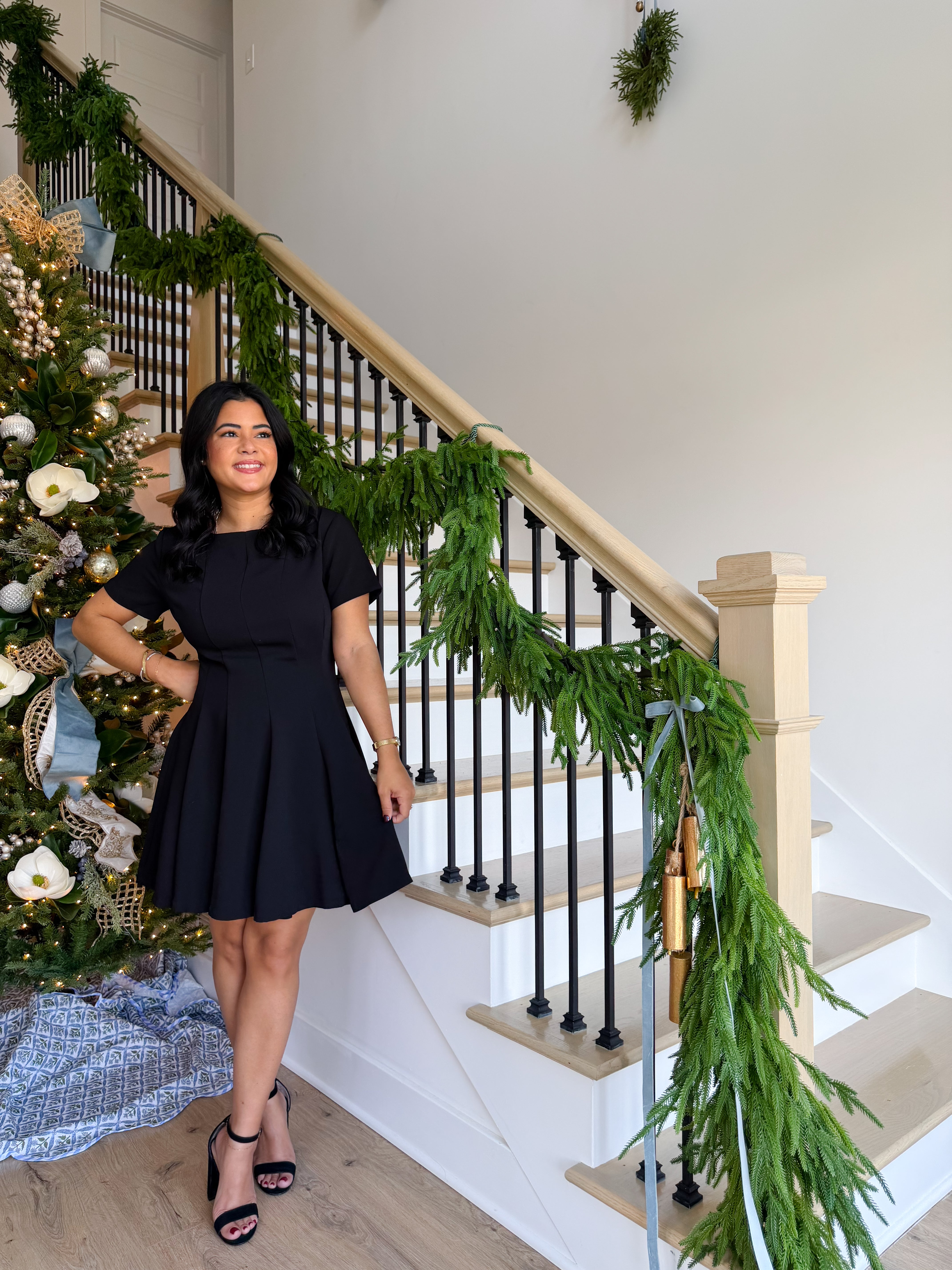 The Midnight Soirée Dress is the kind of classic you can slip into and instantly feel pulled together. The round neckline, tailored bodice, and soft flare skirt create a flattering silhouette that moves gracefully—perfect for everything from dinner parties to Christmas services. Simple, timeless, and so easy to style.