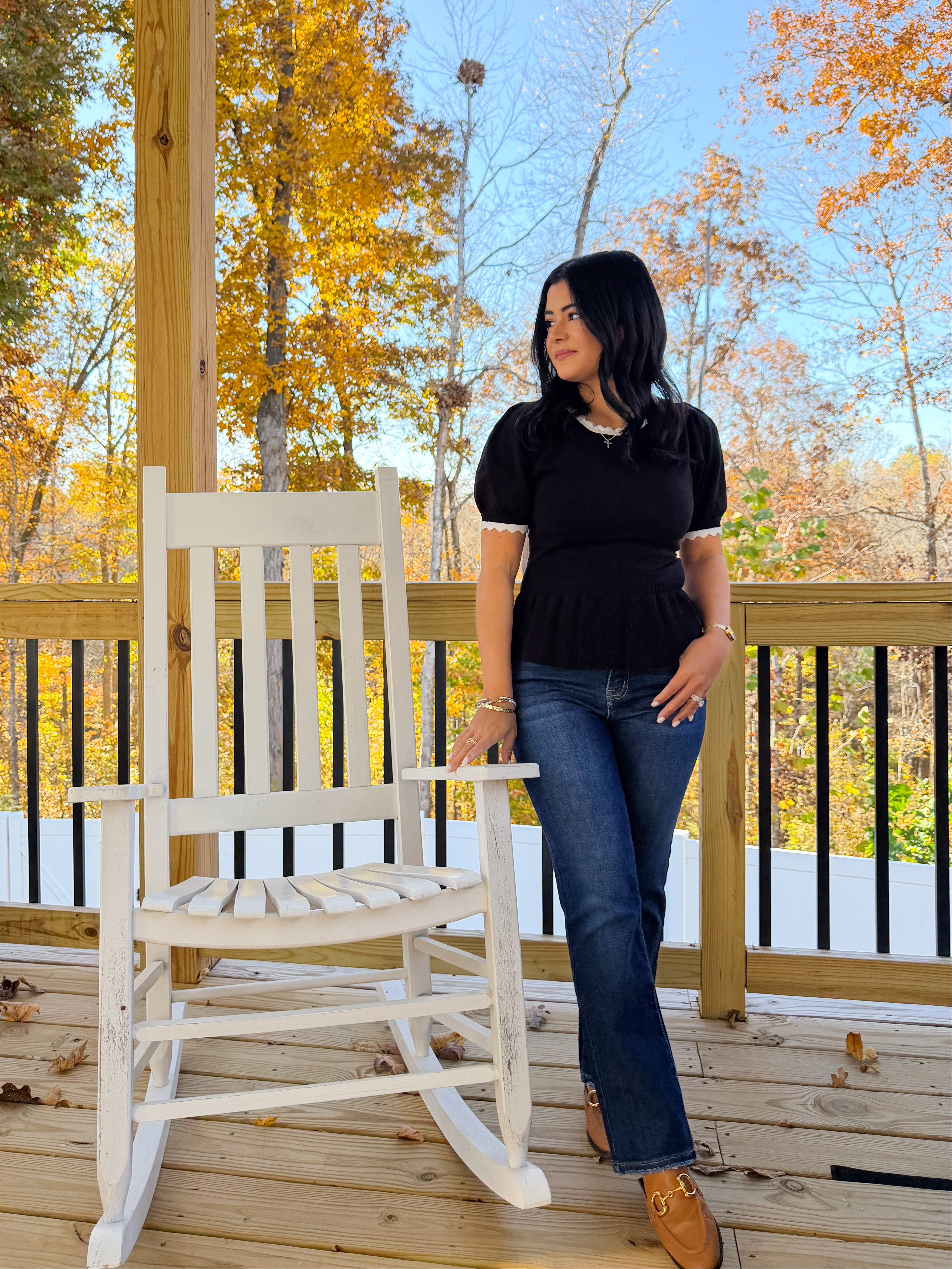 The Jingle Bell Knit Top is a sweet little pullover with classic charm. The puff sleeves add a touch of softness, while the scalloped edges give a fun, feminine finish. It pairs beautifully with denim, skirts, or winter trousers—perfect for gatherings, school programs, or a polished holiday outfit.