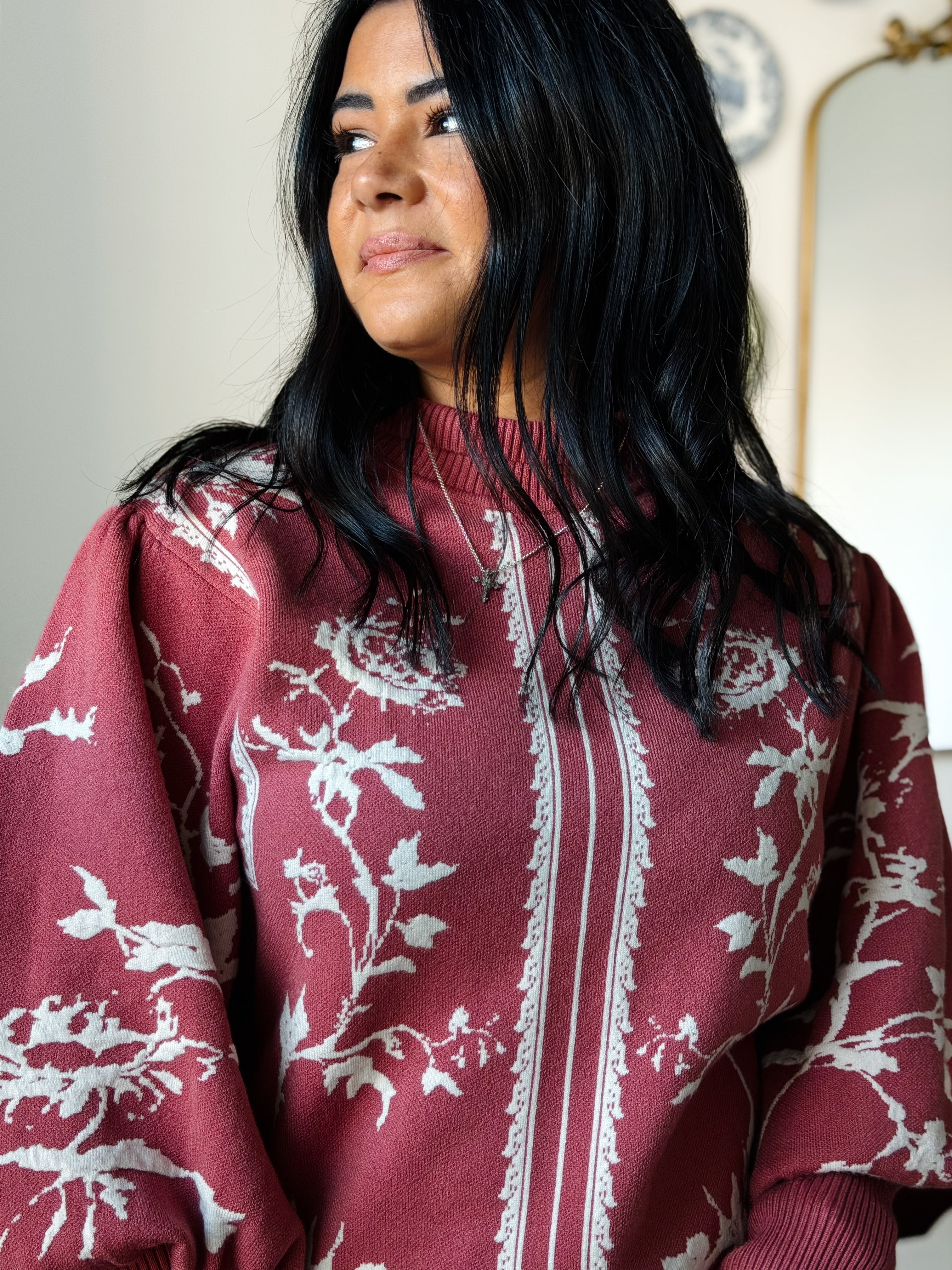 The Fall Morning Sweater captures that “holiday morning at home” feel. With its dramatic balloon sleeves and soft mock neck, it adds a graceful, cozy presence to any outfit. Pair with jeans, a skirt, or layer under a coat — it’s as versatile as your favorite cup of coffee.Our Favorite Details: